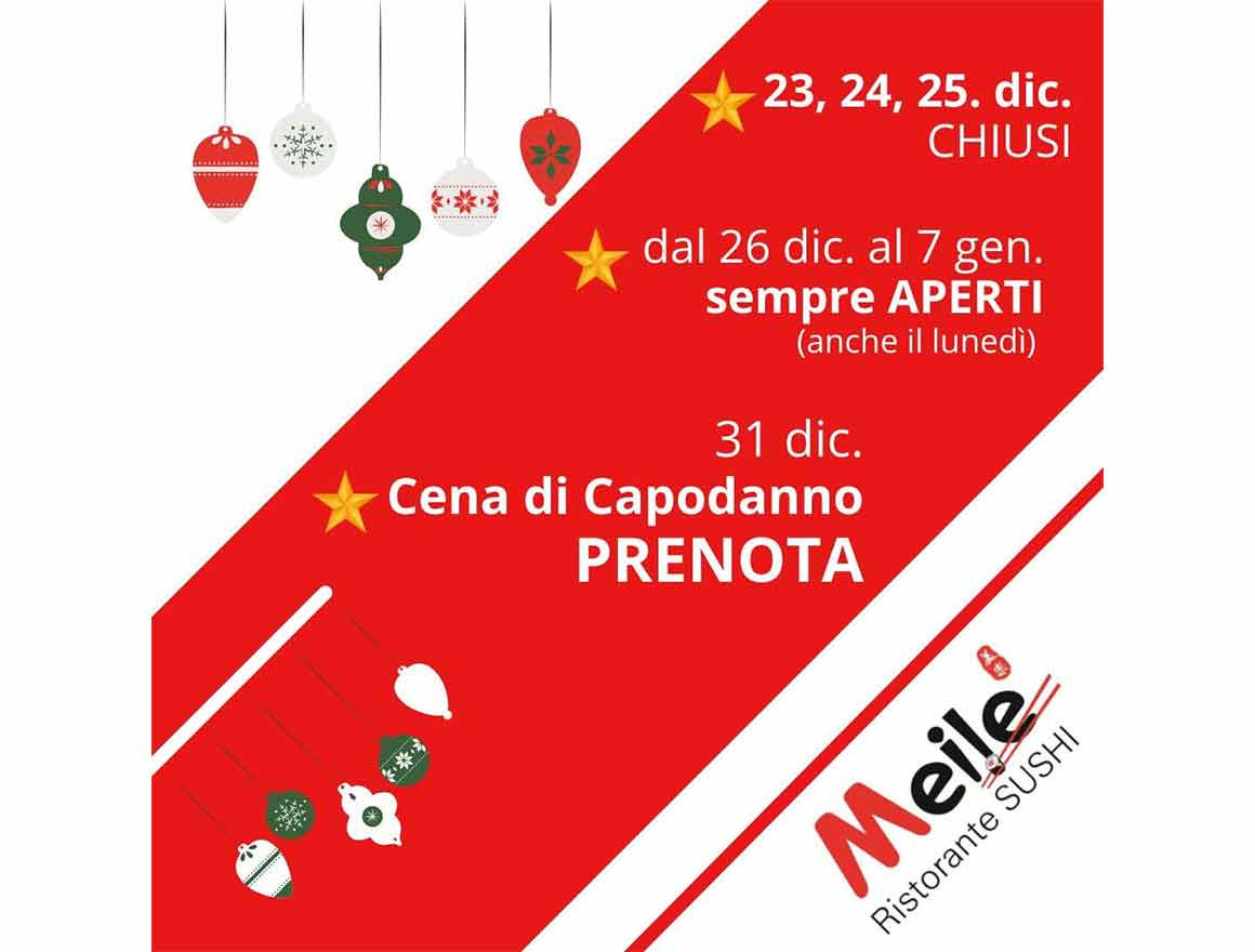 Si informano i nostri gentili clienti che dal 09 Gennaio 2023 al 12 Gennaio 2023, il nostro ristorante rimarrà chiuso per ferie! Ci rivediamo il giorno 13 Gennaio 2023